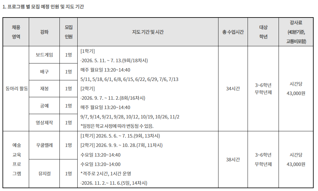 보드게임,배구,재봉,공예,영상제작,우쿨렐레,뮤지컬